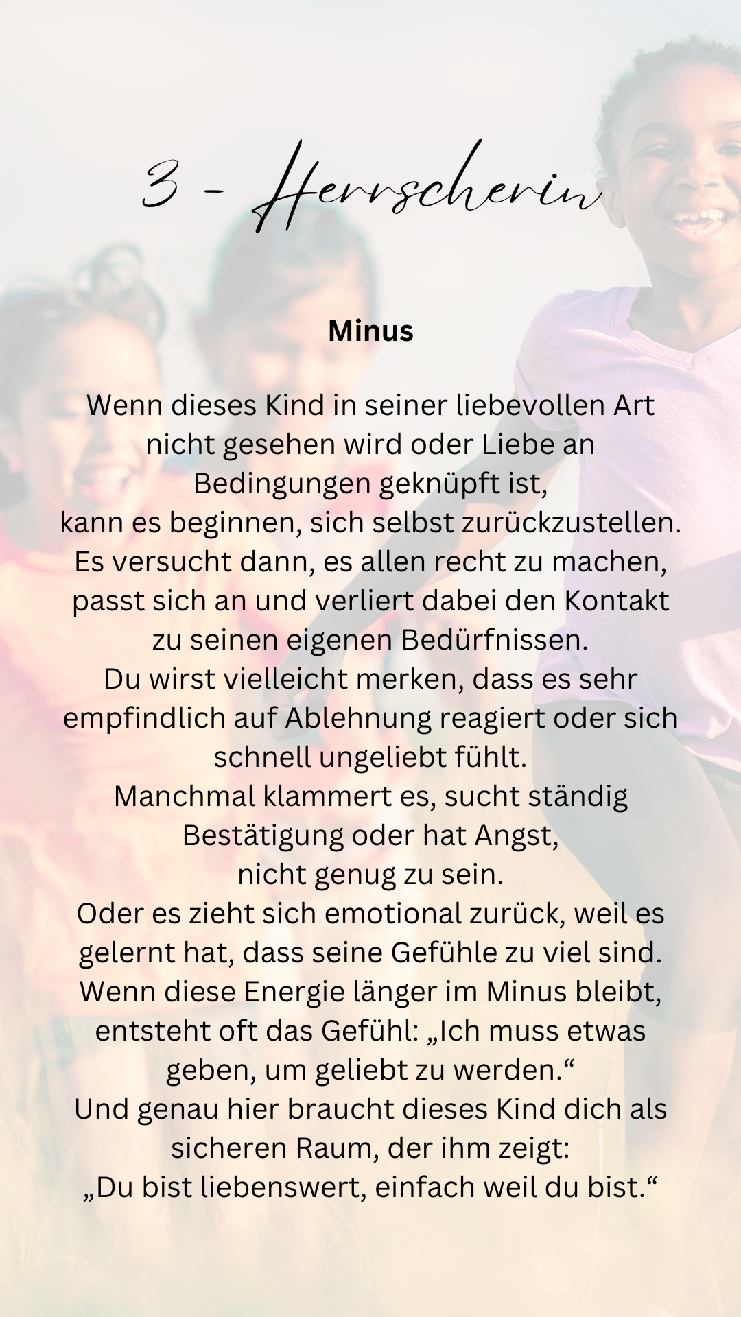 Dieses E-Book hilft dir, dein Kind auf einer tieferen Ebene zu verstehen. Du erkennst, warum dein Kind so fühlt, reagiert und handelt und was es wirklich braucht. Statt nur Verhalten zu sehen, verstehst du die Energie dahinter.