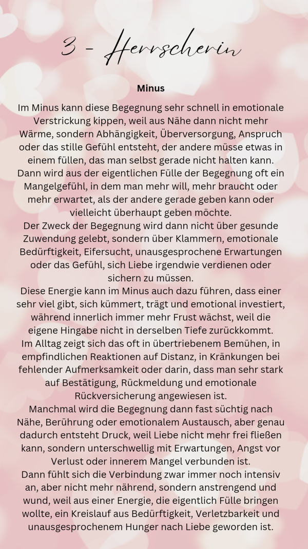 Dieses E-Book ist für dich, wenn du verstehen willst, warum ihr euch begegnet seid und was eure Verbindung auf einer tieferen Ebene wirklich bedeutet. Hier geht es nicht nur um Gefühle, sondern um die energetische Grundlage eurer Beziehung. Du erkennst, was euch verbindet, wo eure größten Herausforderungen liegen und warum sich bestimmte Dynamiken immer wiederholen.